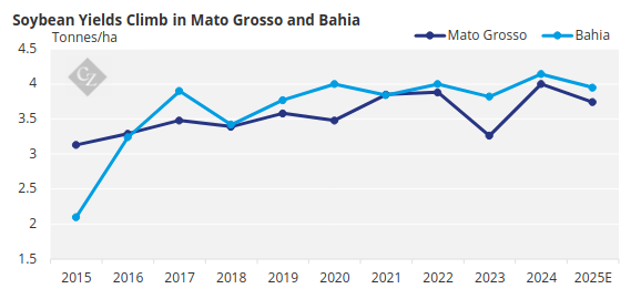 One of the most significant advances is in pest control. Smart traps that use sensors and cameras to identify pests are being adopted across more than 50,000 hectares (ha) of soybean fields in Mato Grosso and Bahia. These devices send data to systems that identify the type and quantity of insects captured, as well as recognise infestation patterns over time.