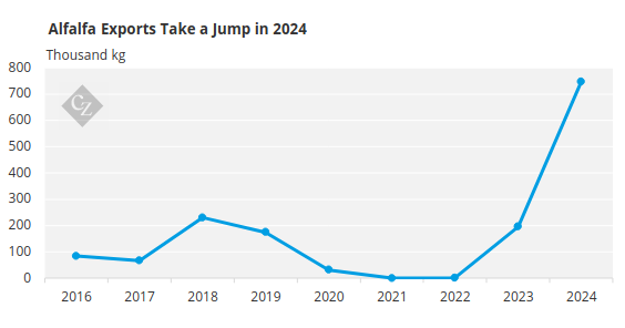 The increasing use of irrigation should also allow for greater supply stability and continuous harvests. Rising international demand, especially for high-quality alfalfa, completes this encouraging triad.