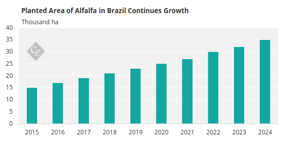 Intensive milk systems are boosting alfalfa production in Brazil. These production models require high-quality feed, driving expansion. In the international market, Middle Eastern demand is rising due to water-related farming restrictions and the need to supply growing herds.
