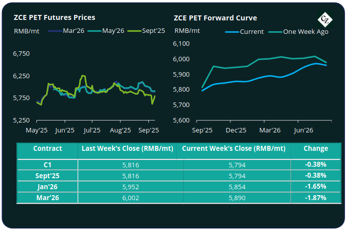 PET Resin futures also weakened with the next main month contract, Jan’26, down by 1.65% versus the previous week.