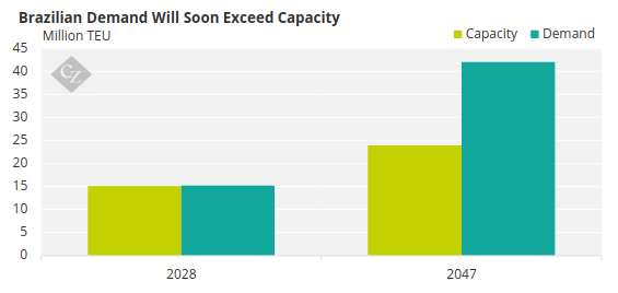 Several projects are underway across the country, including new terminals and terminal expansions, aimed at increasing national capacity to meet the expected demand surge. Maersk and DP World are among the leading industry players involved in expansion projects at the port of Santos, with the latter aiming to double its terminal’s container capacity.
