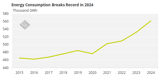 In 2024, energy consumption reached a record high of approximately 561,600 GWh. Historically, this volume represents an increase of about 20% since 2015, according to the Energy Research Company (EPE).