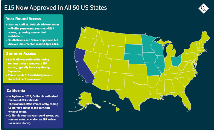 California’s approval of E15 sales provides the ethanol industry another opportunity to push for the US Congress to legislate year-round E15 sales nationally.