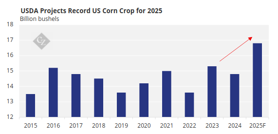 The September crop report from the USDA confirmed that farmers are expected to harvest a record corn crop of 16.8 billion bushels (an increase over August’s estimate), with prices projected to fall to six-year lows.