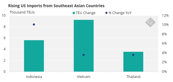 Conversely, imports from select Southeast Asian countries, including Indonesia, Vietnam, and Thailand, showed growth.