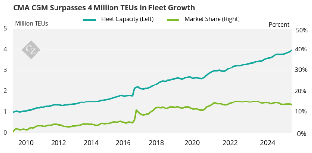 CMA CGM Hits Milestone Amid a broader trend of capacity expansion among major shipping lines, CMA CGM has distinguished itself by reaching a major milestone in early July—surpassing 4 million TEUs in operated capacity.