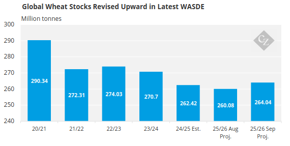 The September WASDE reduced US wheat stocks by 25 million bushels, entirely from higher exports.