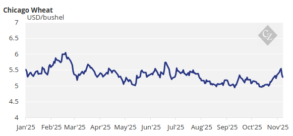 China suspends tariffs and buys US wheat. Markets await the November WASDE on November 14, with expectations of lower corn yields. Any price gains may be short-lived unless yield cuts exceed forecasts, as upside remains limited.