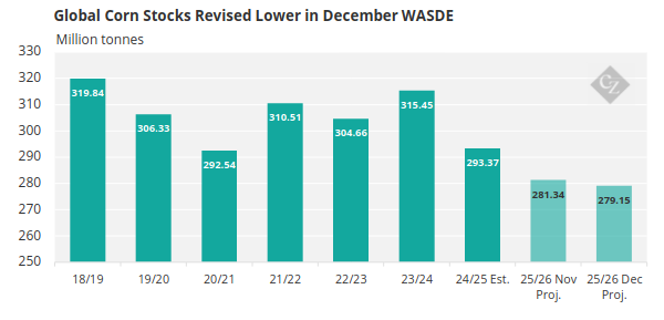 Global Corn Supplies Drop After December WASDE