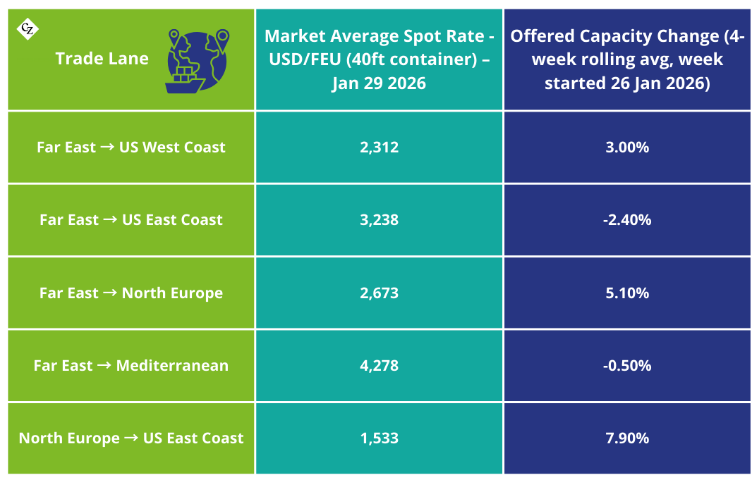 Let’s dive into the first signals of this year, including the capacity and rate trends that have begun to take shape in the weeks ahead of CNY 2026.