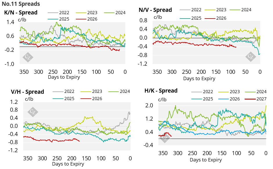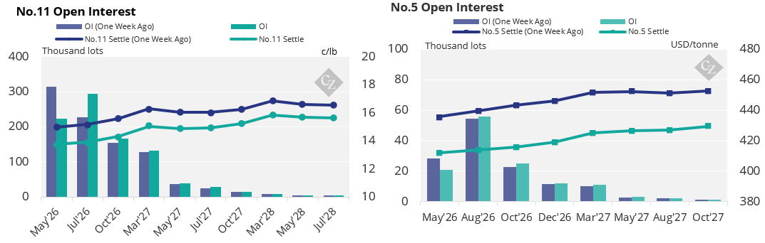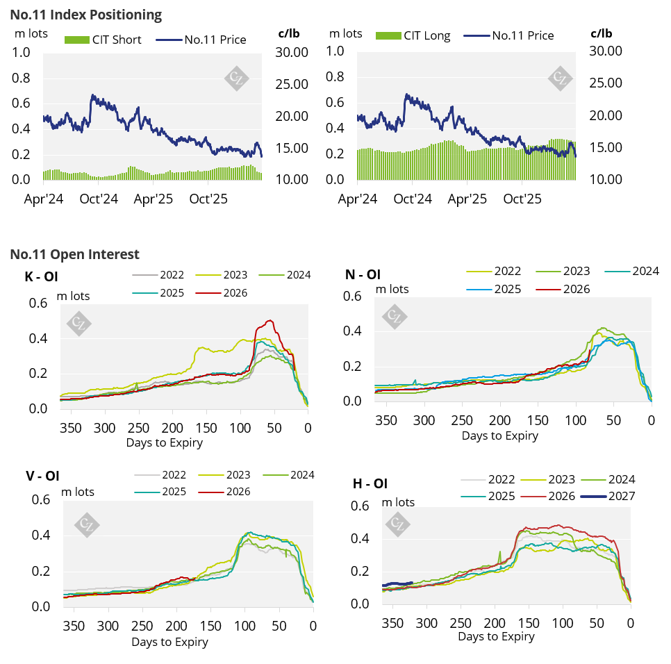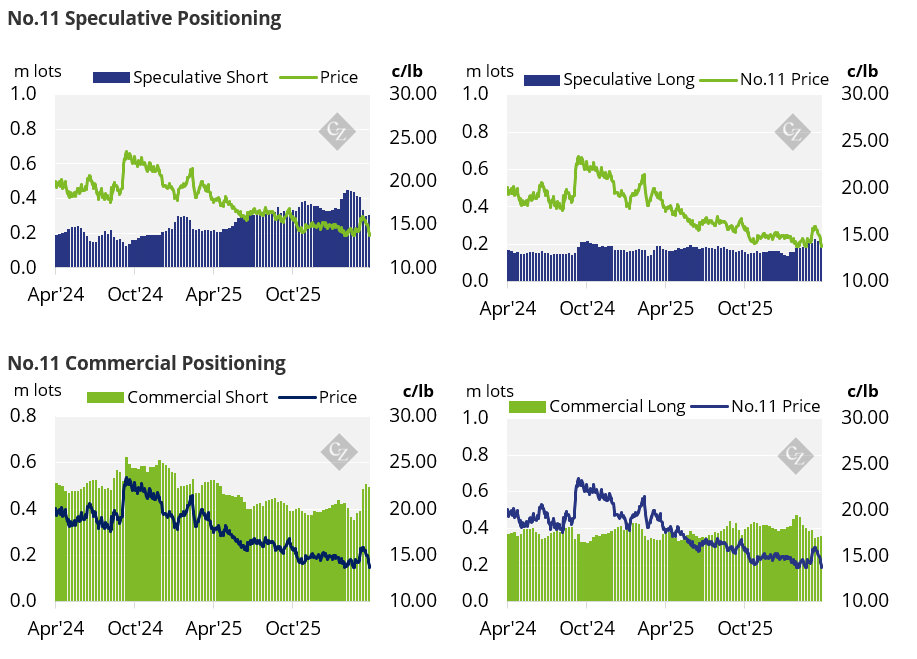 The No.11 raw sugar prices continued to trade lower over the past week. Producers have closed out their positions heavily. Speculators have extended their net-short position once more.