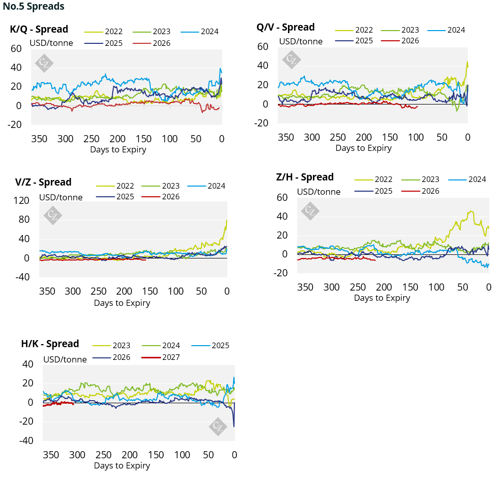 The No.11 forward futures curve and the No.5 forward futures curve have both declined across the board.
