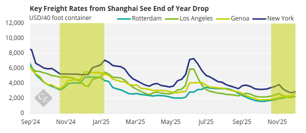Analysts point to persistent oversupply as the primary driver. Carriers have been reluctant to withdraw ships during the seasonal winter slowdown, even as demand softens and the US holiday period proves weaker than expected. This has left the market saturated at a time when rates usually receive support ahead of Chinese New Year. Freightos reports that rates are only marginally above their yearly bottom, with little evidence of a rebound unless broader market conditions shift.