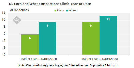 Corn has risen in Chicago on higher exports and lower yields. Wheat gained globally amid fresh demand, while limited US data keeps traders focused on farm-level yields. The USDA’s historical trends support the lower yields the market expects.