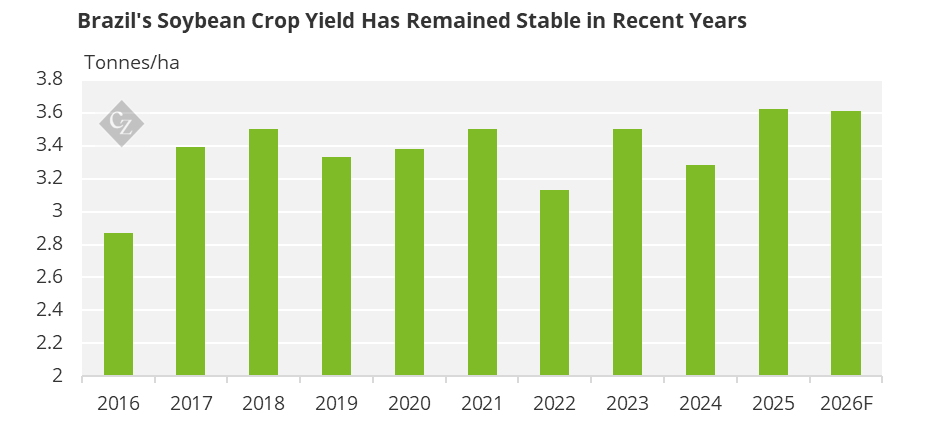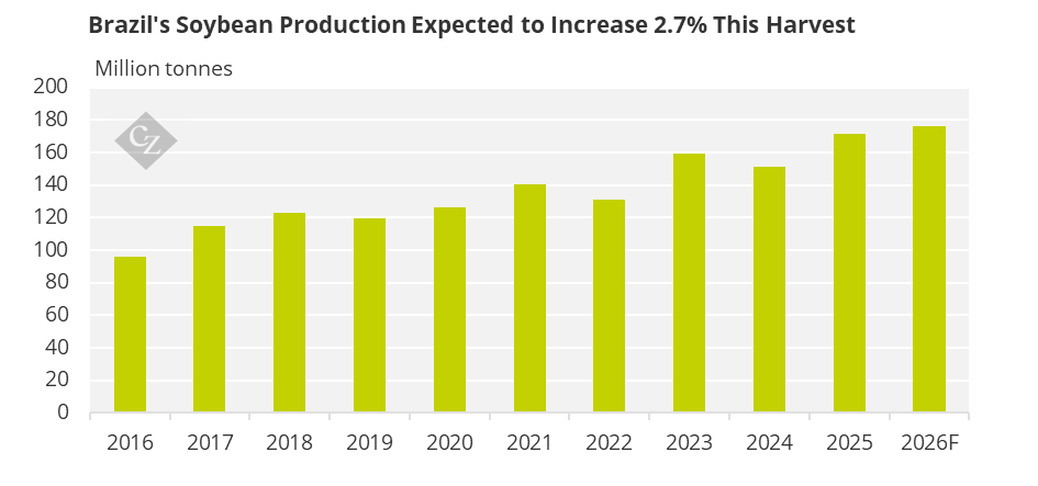 Producer costs are rising for Brazil’s 2025/26 soybean crop. Costs in Mato Grosso are expected to rise by nearly 8% for the harvest, estimated at over 176 million tonnes, squeezing producers’ profit margins, mainly due to higher fertiliser and input prices. For the 2026/27 cycle, costs are projected to ease, supported by lower fertiliser market volatility and the possibility of interest rate cuts in Brazil.
