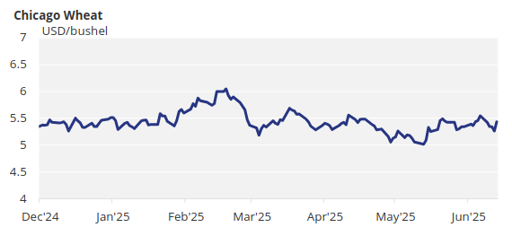 Coceral projected EU+UK wheat production at 143.1 million tonnes, significantly up from 126.3 million tonnes last year. The June WASDE report reduced US wheat ending stocks by 25 million bushels, all from higher exports. Global stocks were raised by 1 million tonnes, while production was left basically unchanged.