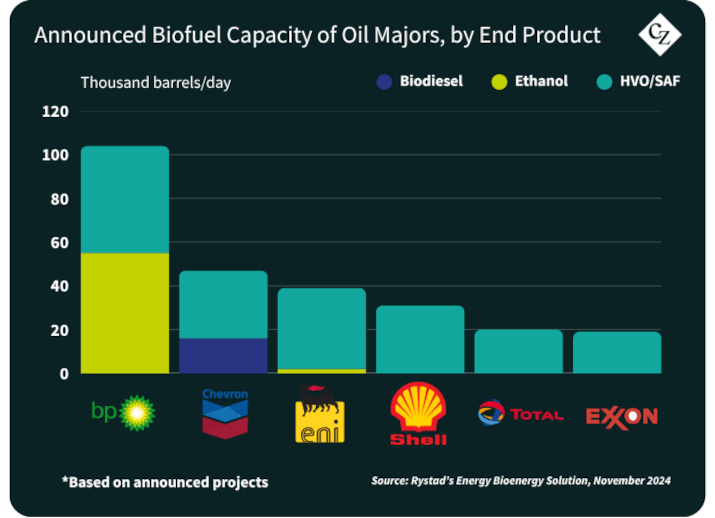 By the end of 2024, several oil majors had increased investments in biofuel development, with a focus on sustainable aviation fuel (SAF).