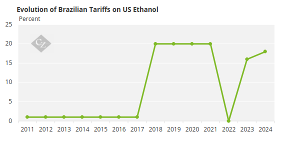 Since 2020, Brazil has maintained an 18% tariff on US ethanol, a policy that has frustrated US producers, given that Brazilian ethanol can enter the US with a 2.5% de minimis tariff. Previously, US producers could ship up to 600 million litres of ethanol duty-free under a tariff-rate quota system, above which the tariff rose to 20%.