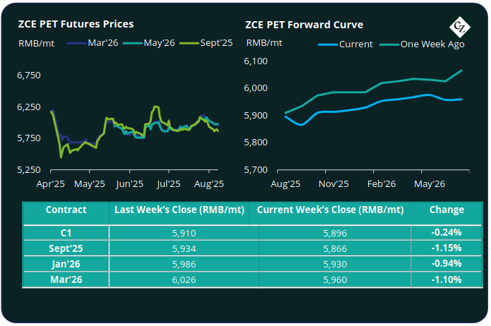 The average weekly premium of the Sept’25 PET Futures over Sept’25 Raw Material Futures increased to USD 20/tonne, up by USD 3/tonne. By Friday, the daily premium stood at USD 19/tonne.