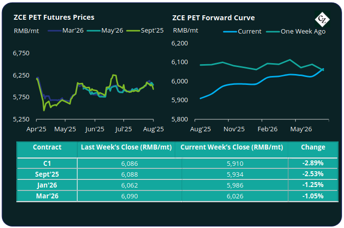 PET and PTA Futures retreated Friday as US imposed new trade tariffs, as macros turn bearish. Asian PET resin export prices also softened impacted by slower demand and falling feedstock costs. Forward curves have now moved from backwardation to flat, even small premium through to 2026.