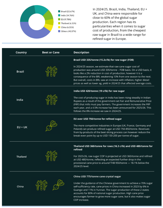 In our Cost of Production Around the World update we look at a sample that represents over 60% of world sugar production.