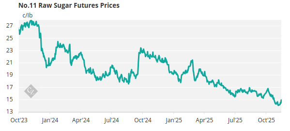 The raw sugar futures continued trading between 14-15c/lb over the past week starting at 14.2c/lb on Monday, hitting a mid-week high of 14.5c/lb and eventually settling at just under 15c/lb on Friday.