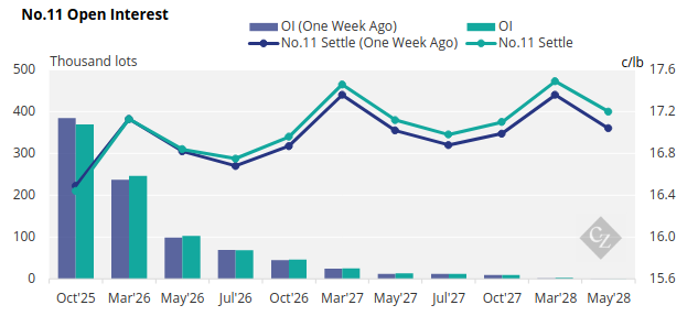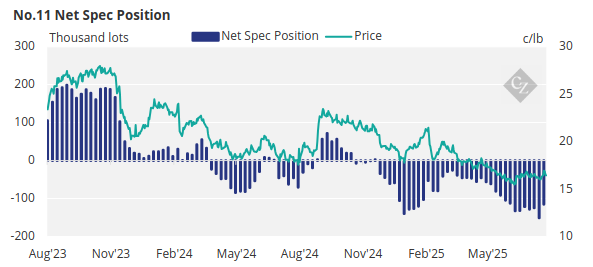 The No.11 raw sugar futures traded higher over the past week, getting close to 17c/lb. Producers took advantage of this and have added to their cover. Speculators have opened a large number of long positions.