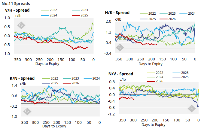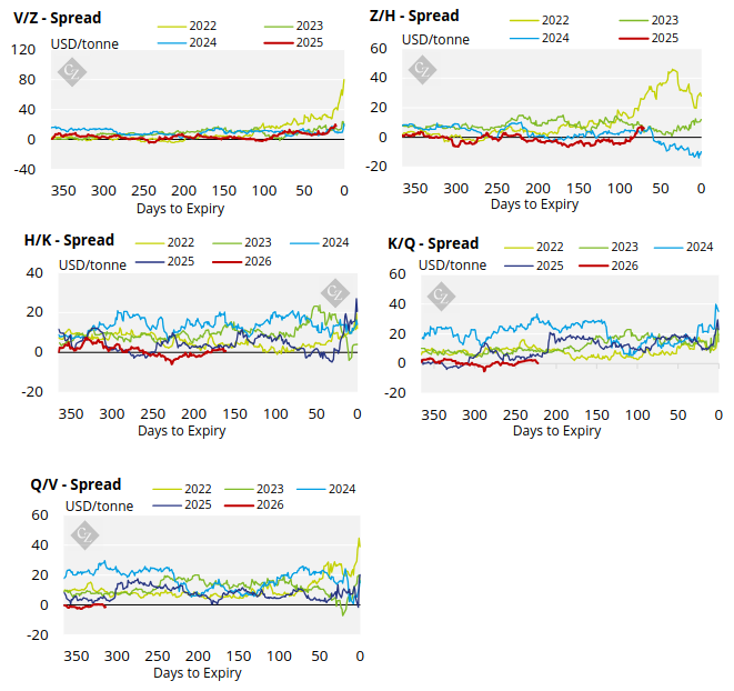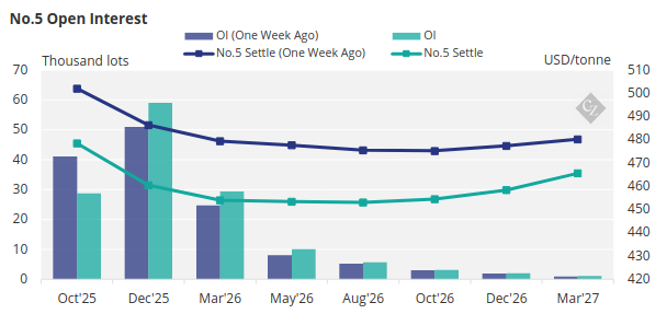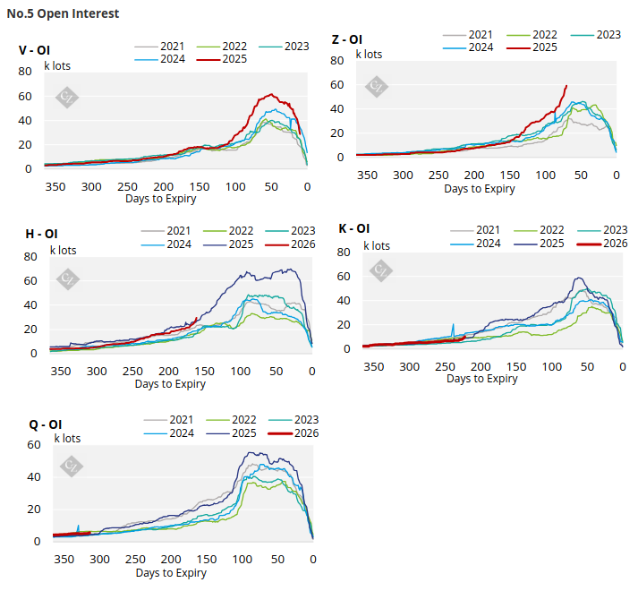 The No.5 forward curve, has also weakened across the board although the front-month Oct’25 contract remains well above the nearby contracts.