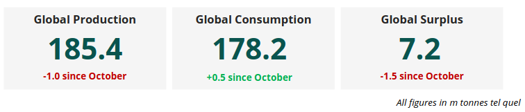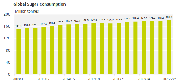 Our estimate for global sugar consumption has increased very minimally by 0.5 million tonnes and now stands at 178.2 million tonnes.
