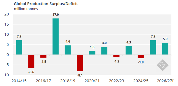 Our projections then show a smaller surplus of 5.9 million tonnes for 26/27.