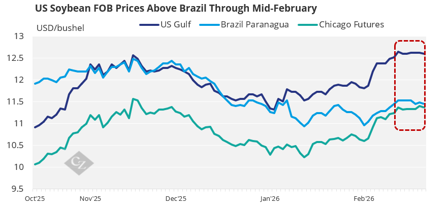 There was US tariff upheaval in February. The Supreme Court struck down Trump’s emergency duties, prompting a temporary 10% import levy set to rise to 15%, applied to all trading partners and reshuffling trade advantages. China, Brazil and India will gain from lower relative penalties, while US allies like the EU and UK face higher tariffs. Winter weather, rising fertilizer costs and new trade deals with South Korea, Brazil and Indonesia add further pressures to global agricultural markets.