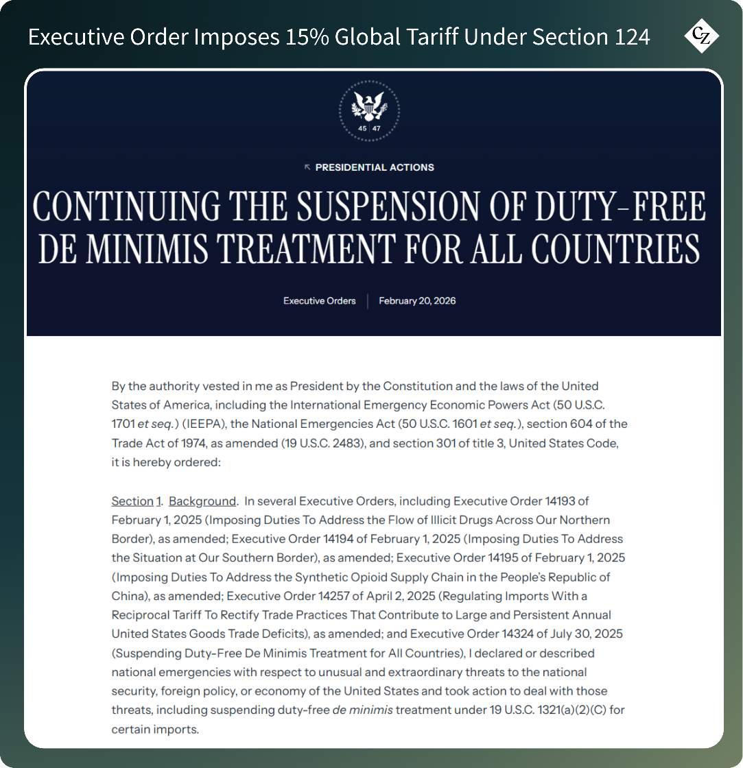 US tariffs did not disappear, however. Immediately after the ruling, President Trump signed an executive order imposing a global tariff under the authority of Section 124 of the Trade Act of 1974. The statute permits the tariffs to remain in place for up to 150 days before Congressional action becomes necessary. The new tariff was set at 15% on February 21.