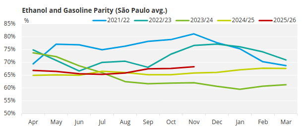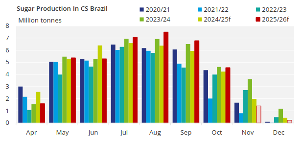 With the crushing higher than expected, the reduction in the mix kept sugar production in line with CZ’s estimates. As a result, the harvest is on track to reach 40 million tonnes in 2025/26.
