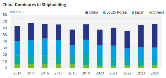 In return, China has paused its countermeasures against five US subsidiaries of Korean Hanwha Ocean, as well as its retaliatory port fees on US vessels docking in Chinese ports.