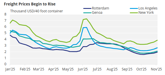 Key Asia-US shipping routes, which had been weakening in October, began to reverse course after the agreement between the presidents was made.