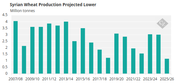 Across Africa, a combination of overly wet and overly dry conditions in different regions have caused chaos for the harvest of cereals and decreased yields. A report by Reuters suggests that as much as 75% of the Syrian wheat crop could fail this year due to drought, although some economic reprieve could be offered to the country in the form of a lifting of sanctions by the US and EU.