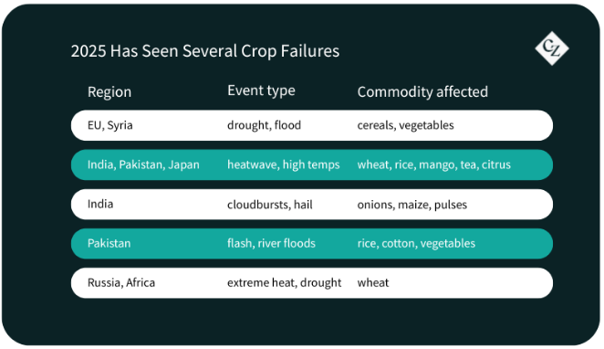 Indian agriculture has been hit hard by extreme weather in recent months. A heatwave between April and July saw temperatures soar to 50 degrees Celsius, causing damage to several crops and harming yields. Rainfall deficits across Assam also led to a 12% decline in tea production for June, according to the Times of India.
