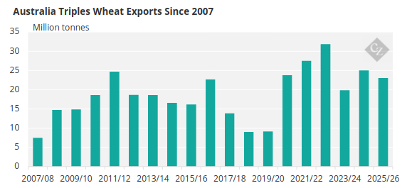This has led to a sharp increase in wheat exports.