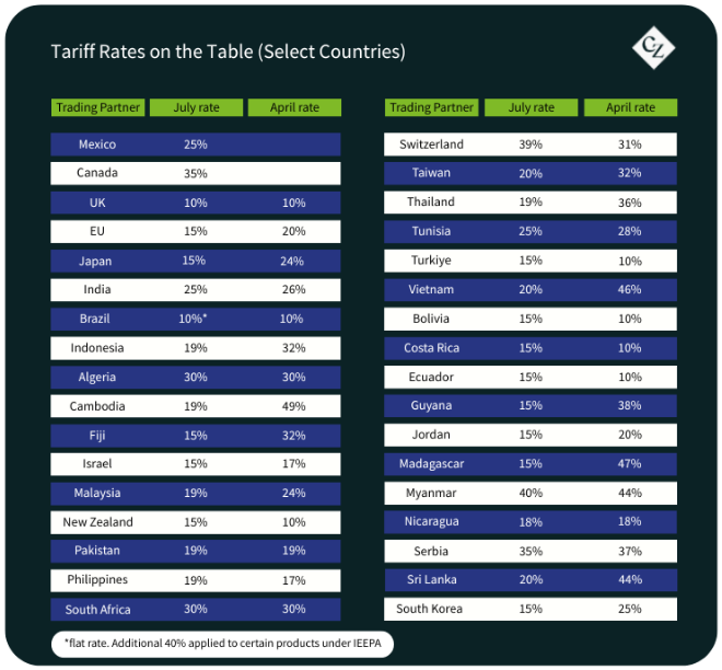 The deadline for the rest of the world is August 8, when those without a deal will face tariffs of up to 50%.