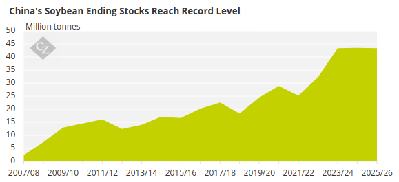But as Chinese soybean stocks continue to build, there are worries of a “glut”, with some Chinese processing plants having to shut down due to lack of storage space.