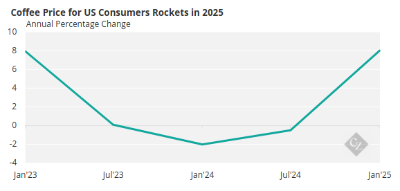 However, with Brazil producing one-third of coffee consumed in the US, the price is set to rise sharply again for US consumers.