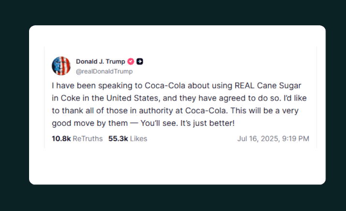 For one industry, however, one of President Trump’s latest announcements has provided support. In a message posted to his Truth Social account, the president said he would pressure Coca-Cola to return to using real cane sugar instead of high fructose corn syrup (HFCS).