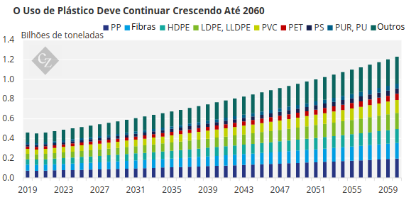 Projeta-se que esse crescimento continue, com a produção prevista para atingir 736 milhões de toneladas até 2040 – um aumento de 70% em relação aos níveis de 2020. O uso de plástico também deverá crescer de forma significativa nas próximas décadas, impulsionado pela demanda contínua nos países da OCDE e pela rápida expansão nas economias emergentes da Ásia, África Subsaariana e América Latina.