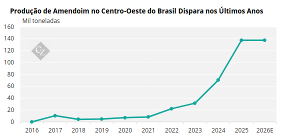 Os produtores do Centro-Oeste têm buscado diversificar suas culturas, investindo em plantações como o amendoim. O cultivo de amendoim tem crescido de forma significativa no Brasil, e o Mato Grosso possui condições climáticas favoráveis, com regime de chuvas regular.