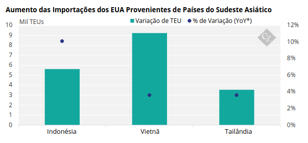 Por outro lado, as importações de alguns países do Sudeste Asiático, incluindo Indonésia, Vietnã e Tailândia, apresentaram crescimento.