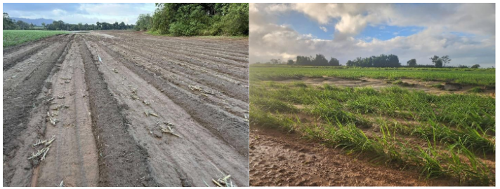 Inundações causadas por chuvas torrenciais devastaram as fazendas locais. Grande parte da cana recém-plantada foi perdida, com os produtores agora focados em recuperar as soqueiras. Linhas ferroviárias destruídas, usinas fechadas e detritos agravam os desafios, embora o setor esteja se unindo.