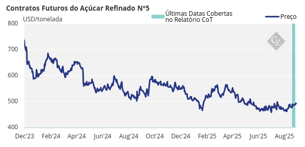 Os contratos futuros do açúcar refinado nº5 se fortaleceram na semana passada, abrindo em USD 481/tonelada no início da semana e fechando em USD 503/tonelada na última sexta-feira.