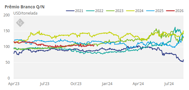Os contratos futuros do açúcar refinado nº5 começaram a semana em uma alta de USD 464,4/tonelada, antes de cair a partir de terça-feira para USD 458/tonelada e finalmente fechar em USD 450,4/tonelada na sexta-feira.