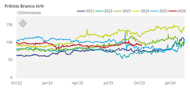 The H/H white premium started the week at a high of USD 93.4/tonne, before dipping slightly to trade between USD 91.6–92/tonne for the rest of the week, eventually closing at USD 92.6/tonne on Friday.