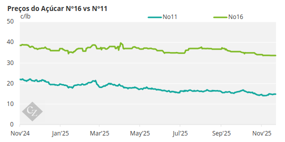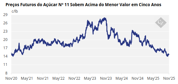 Ainda assim, muita pressão permaneceu sobre as margens do mercado. Embora os preços futuros do açúcar nº 11 (a nível mundial) tenham subido acima do menor valor em cinco anos, eles permaneceram no menor valor em quatro anos, sustentados por um relatório recente da Organização Internacional do Açúcar que prevê um excedente global de açúcar no atual ano comercial (2025-2026).